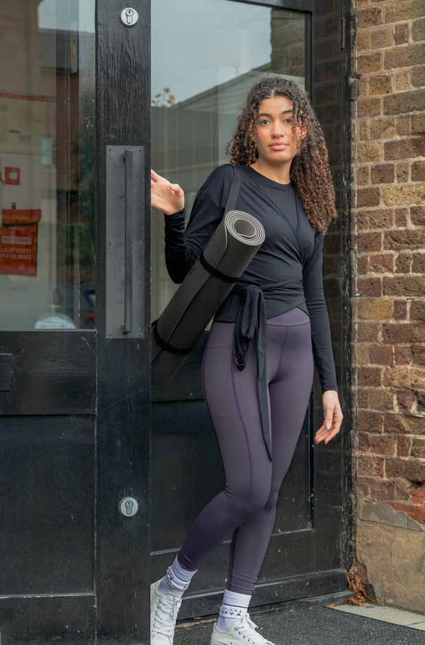High-rise super soft flared pants with a supportive wrapped waistband featuring hidden phone pocket. We've removed the front seam and designed the flare to start below the knee for a more flattering and stylish fit. Four-way stretch also makes it a great option for yoga class or styled into your everyday wardrobe.